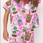 These trendy pajama sets, crafted from polyester fabric, are perfect for young women and kids.