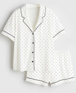 Material: Main fabric is polyester (polyester fiber). It has a fabric weight of 181 - 200 grams per square meter, offering a thin and breathable texture, great for summer, spring and autumn wear. The collar is a crew - neck design, with three - quarter sleeves and short pants. Functions include being quick - drying, breathable, suitable for sleep, bathing, and even casual outdoor wear, providing warmth (moderately) and a fresh - wearing experience.